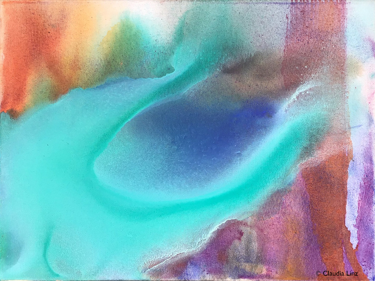 Hier siehst Du Verschmelzungen der fließenden Pigmente auf Leinwand