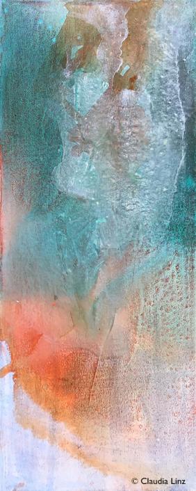 Hier siehst Du Verschmelzungen der fließenden Pigmente auf Leinwand